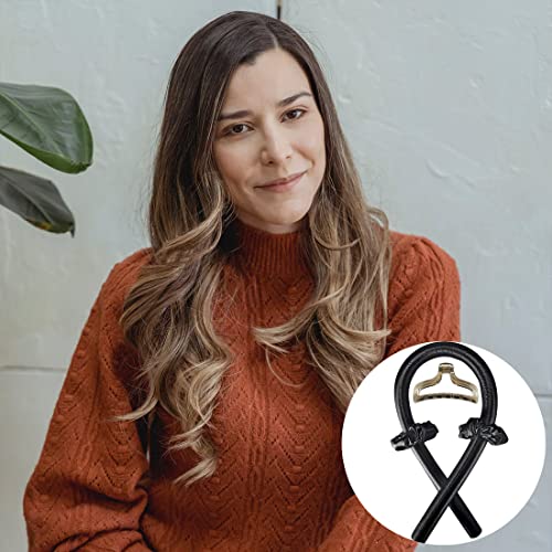 Androxeda Bigodino Lungo Boccoli Boccoli Capelli Senza Calore Heatless Curling Ribbon And Scrunchies Bigodini Senza Calore strumento per lo styling dei capelli fai-da-te per capelli(Nero)