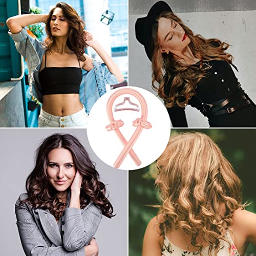 Androxeda Bigodino Lungo Boccoli Boccoli Capelli Senza Calore Heatless Curling Ribbon And Scrunchies Bigodini Senza Calore strumento per lo styling dei capelli fai-da-te per capelli(rosa)