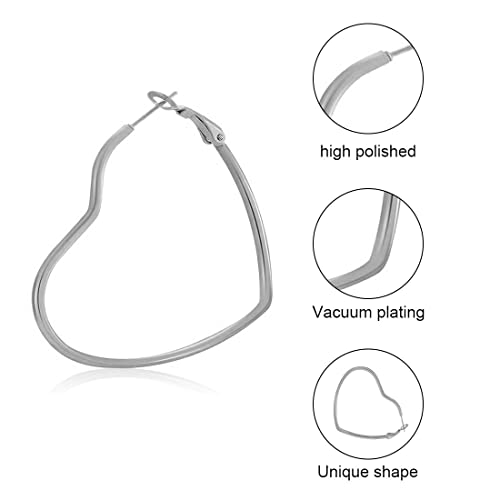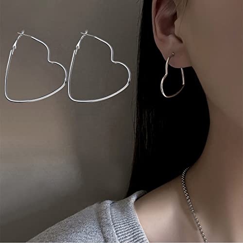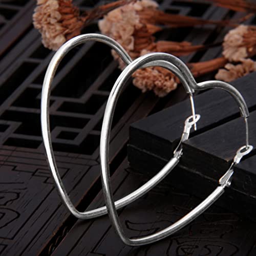 Androxeda 1 paio di orecchini rotondi a cuore grande in argento 925 orecchini a cuore rotondi da donna ipoallergenici (55 * 46 mm)