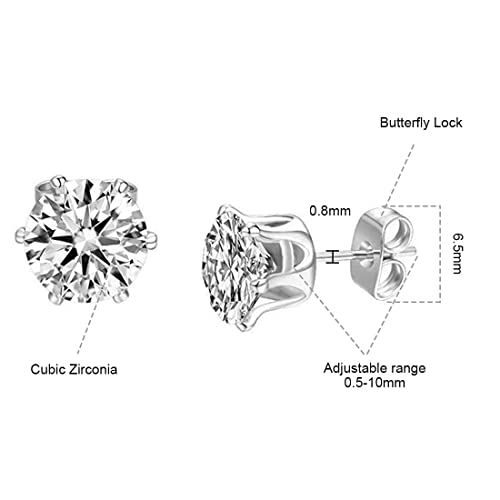 Androxeda 3 paia di orecchini in zircone lucido, orecchini a bottone in argento ipoallergenico, set di gioielli da donna, da uomo, da 4 a 6 mm