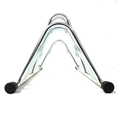 ANDRYS - Rastrelliera Porta Biciclette a Pavimento da Esterni e Interni 3 Posti, con Tappi in Pvc Neri, Zincato a Freddo,Colore Argento, 78 x 42 x 38 cm