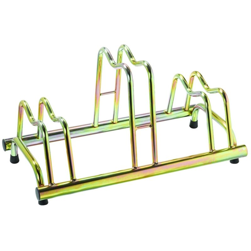 Porta bici a terra per tre Biciclette, anche con freno a disco, con tappi in pvc neri. La funzione di questo Porta bici è di fare da collegamento tra art. 1103 G a art. 1105 G;