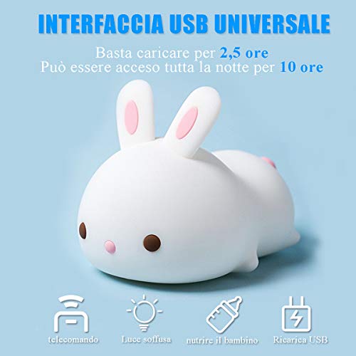 AndThere Luce Notturna Bambini in Silicone Lampada con Comodino Tocca Cambio Colore Luce Notturna LED Telecomando USB Ricaricabile 7 Colori Luce da Notte Natale Giorno dei Bambini Regalo Cameretta