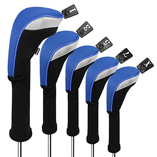 Andux Golf Fairway legno Club testa copre 460cc driver Extra collo lungo Blu 5 pz/set