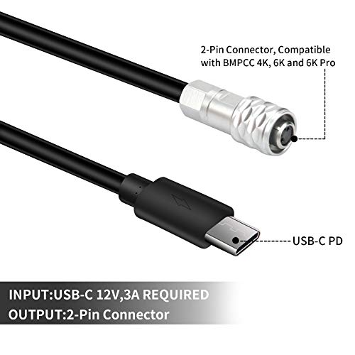 Funziona con Blackmagic Pocket Cinema Camera BMPCC 4K / 6K - Il tubo di alimentazione converte USB-C PD a 12V consentendo di alimentare la tua Blackmagic Pocket Cinema Camera BMPCC 4K / 6K, 12V dispositivi e fotocamere mirrorless.