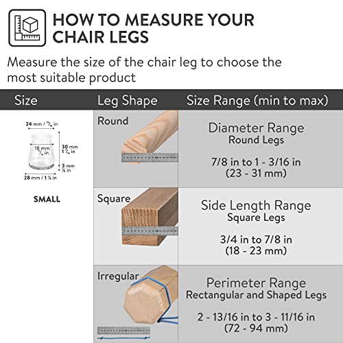 Dimensioni Piccole- Tappi sedie per qualsiasi forma di gamba di sedia- rotonda, quadrata, ecc. Perfetto per gambe di sedie con diametro rotondo di 23-30 mm, lunghezza quadrata di 18-23 mm e circonferenza di 72-94 mm