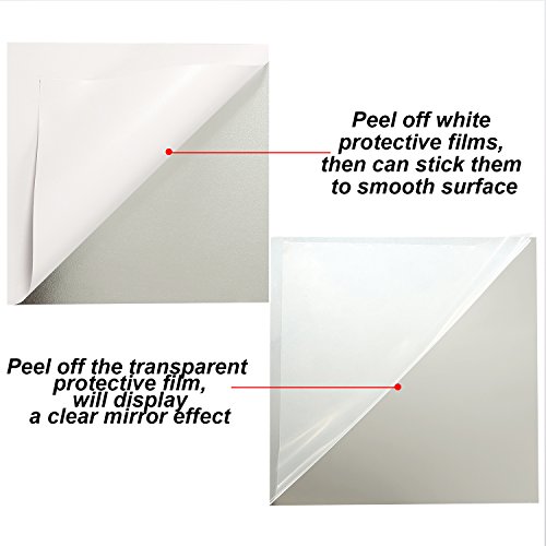 Materiale e avviso: le piastrelle con specchio in plastica sono realizzate in materiale PET premium con superficie liscia. Si prega di notare che sono dotati di pellicole di plastica trasparente sulla facciata e di coperture protettive bianche sul retro che è necessario staccare quando si utilizza.