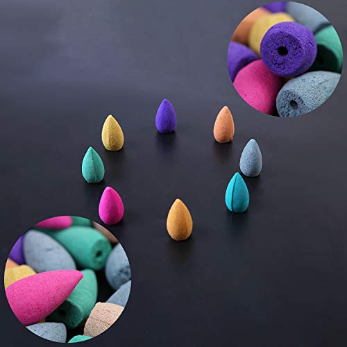 10 fragranze: i coni di incenso a riflusso hanno 10 diverse fragranze, e ogni tipo di esse ha un colore unico, tra cui legno di sandalo (cachi), rosa (rosa), lavanda (viola), giglio (rosso), gelsomino (giallo), tè verde (verde), oceano (blu), limone (arancione), menta (verde chiaro), osmanto profumato dolce.
