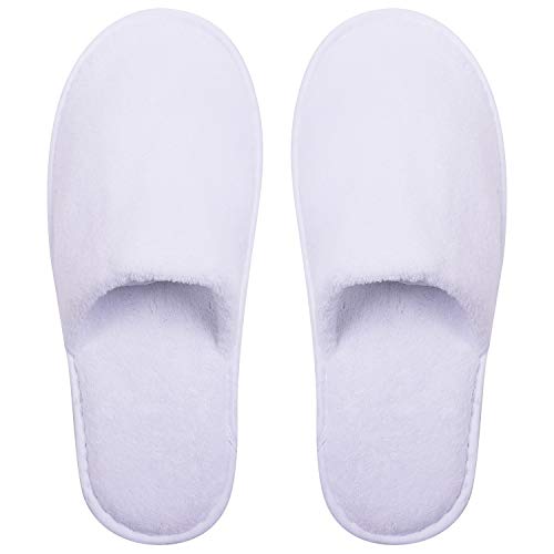 Aneco 6 paia di pantofole in velluto di cotone monouso pantofole soffici punta chiusa ospiti pantofole per la casa, uso alberghiero, bianco, 44 EU