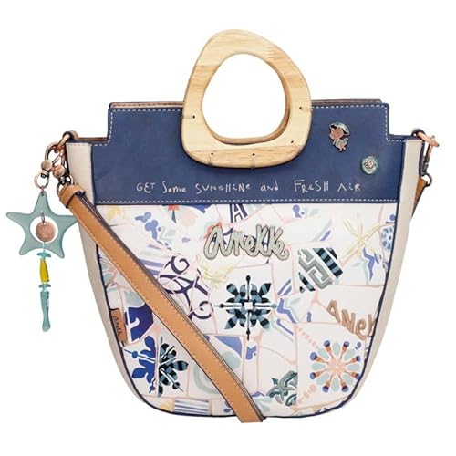 Anekke Borsa a tracolla in ecopelle con manici in legno - Chiusura con cerniera - Collezione Mediterranean 34 x 29 x 10 cm