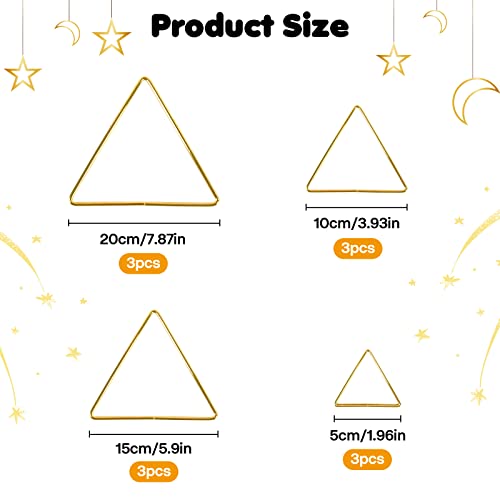Anelli Acchiappasogni, 12PCS Cerchio d'oro Macrame, Ghirlanda Floreale in Metallo, Floreale in Metallo Anelli, Cerchi Metallici per Acchiappasogni, Fioristica, Lavori Creativi ( Triangolo )