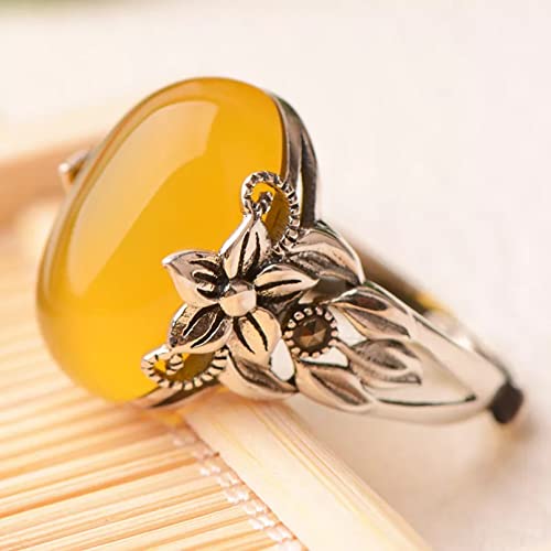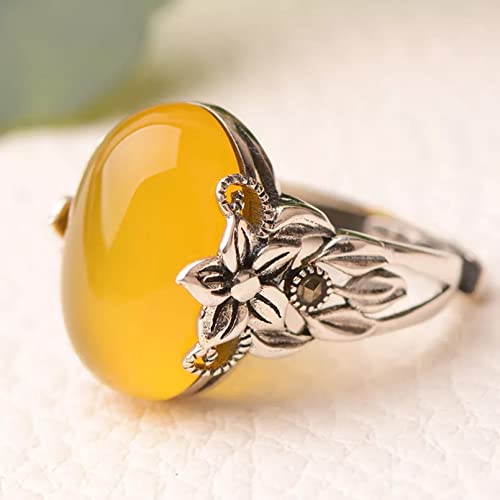 Anelli di agata gialla naturale Anello di topazio con anello in argento sterling 925 per anelli da donna Gioielli di giada Anello 925 Gioielli in pietra naturale