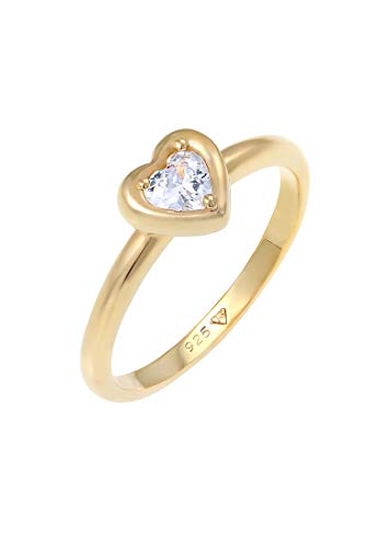 Elli Anelli Anello Cuore Amore da Donna in Argento Sterling 925 Placcato Oro con Cristalli Zirconia