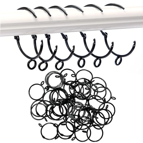 50 anelli aperti per tende in metallo, accessori per tende, anelli per tende, anelli per tende, adatti per tende da doccia, tende (nero)