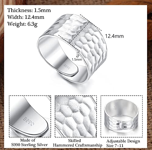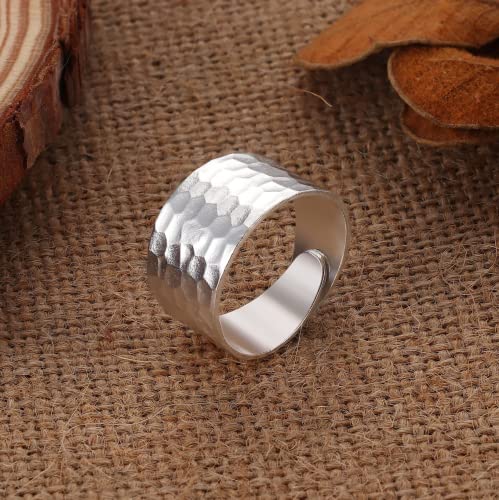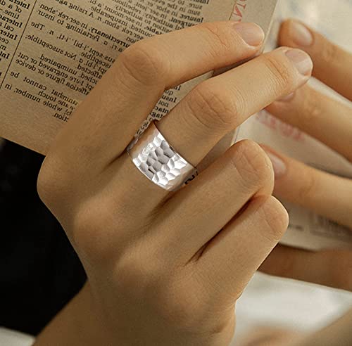 【Design regolabile】: il peso netto è 6,3 g. La dimensione della parte più larga di questo anello martellato è di 12,4 mm, avvolge perfettamente le dita, lo spessore è di 1,5 mm. Il design aperto inferiore utilizzato, può essere regolato alla taglia 7-11 (il materiale in argento sterling è morbido, facile da mantenere o cambiare forma), si adatta al dito della maggior parte delle persone, bello al tatto e comodo da indossare