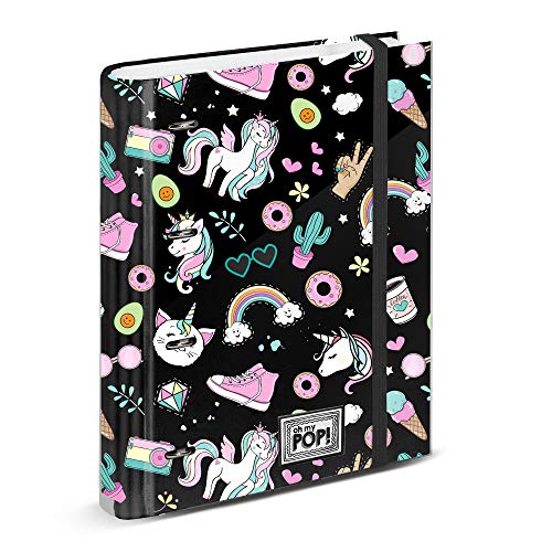 Oh My Pop! Illusion-Raccoglitore 4 Anelli Carta a Griglia, Nero