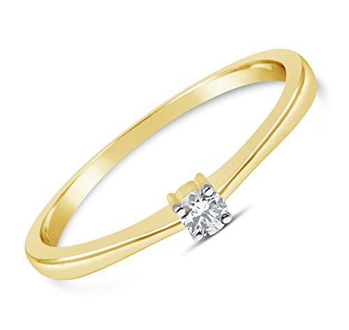 Solitario super carino in oro giallo con diamante naturale di alta qualità da 0,05 ct in impostazione sicura a 4 artigli