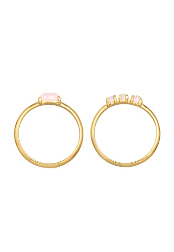 Elli Anelli Donna Anello di impilamento Set Vintage Trend con quarzo rosa in argento 925 placcato oro
