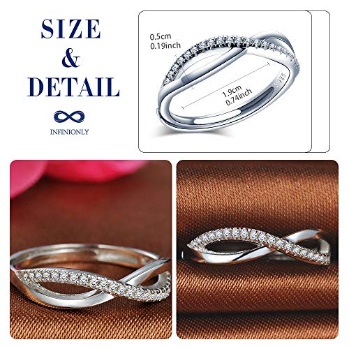 Anelli da donna in argento 925, elegante anello con simbolo infinito, intarsiato zircone, anello di fidanzamento di nozze, misura regolabile, regalo di Natale e compleanno