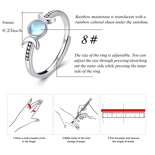 Dea Anelli da donna in argento sterling 925 tripla dea anello sintetico pietra di luna anello anello dea luna anello regolabile fedi nuziali anello tripla dea gioielli, Argento Sterling