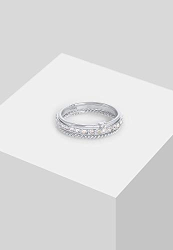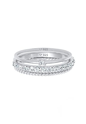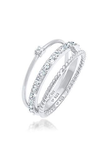 Elli Anelli Donne Pila Elegante Festosa Strati con Cristalli in Argento Sterlino 925