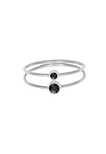 Elli Anelli Donne Set Filigrana con Cristalli Nero in Argento Sterlino 925