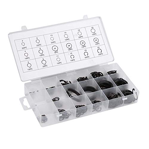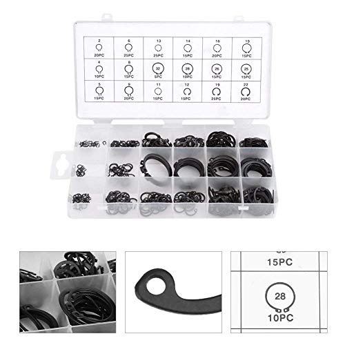 Kit di Anelli Elastici da 300Pcs 2-32mm Kit di Anelli Elastici E-clip con Anello Elastico Esterno Anello Elastico E-clip Snap Kit Anello Esterno Assortimento Set