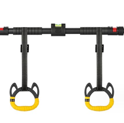 【Spallacci regolabili】Anelli da ginnastica per bambini sono appositamente progettati per i bambini e la lunghezza può essere regolata. Anelli da ginnastica per bambini è dotato di una clip di regolazione a un pulsante, che non è facile da allentare e può essere fissata su qualsiasi trave superiore sicura.