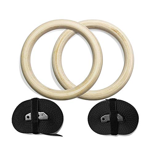 Anelli da Ginnastica 1 Pair Birch Legno Gymnastic Anelli Pull Up Anello per la casa Formazione per la Forza di Fitness 2.8/3.2 cm * 4.5m Cinghie Regolabili (Color: 2 Rings, Size: 32mm)