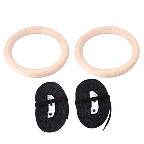 Zer one 1 Paio di Anelli da Ginnastica in Legno con Cinturino in Poliestere da 2,5 cm, Adatto per Allenamento, Esercizi a Casa, Body Building Adulti Uomo Donna Bambini