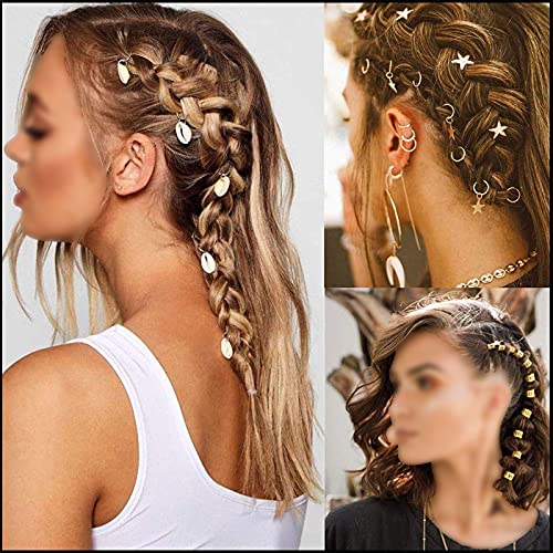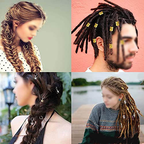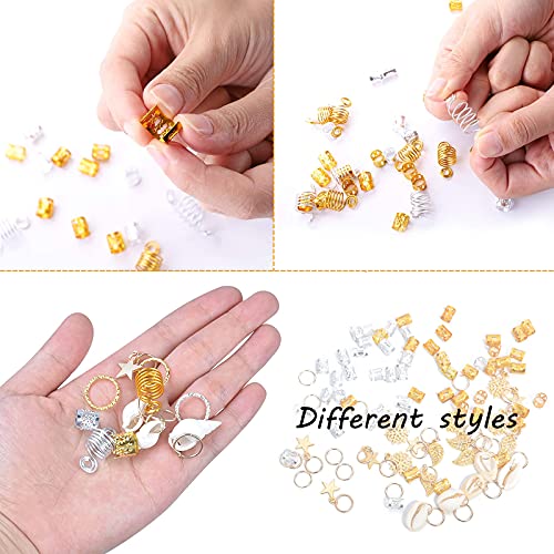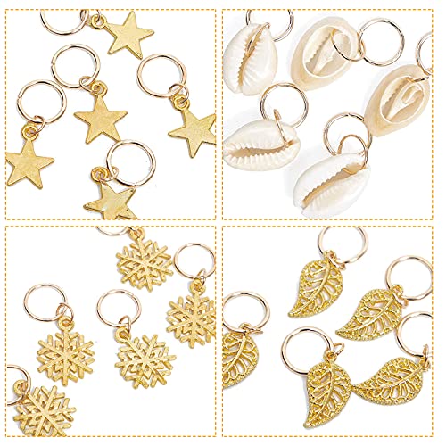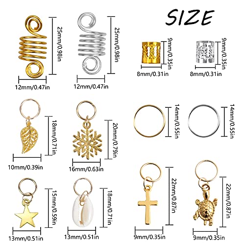 Confezione risparmio: ottieni 30 polsini in metallo dreadlock oro e argento, 40 anelli dreadlock biondi e argento, 20 dreadlock in rame, 5 ciondoli conchiglia, 5 anelli foglia, 20 ciondoli fai da te (5 tartarughe d'oro, 5 croci, 5 fiocchi di neve, 5 stelle) per l'uso quotidiano.