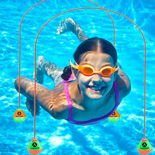 【Giocattolo per Immersioni per Bambini】2 pezzi di giocattoli per immersione, l'altezza dell'arco è di circa 65 cm, adatto per giocare in piscina, giochi di immersione, ecc., Può fluire dalla piscina al fondo per formare una porta di immersione, lo snorkeling è in Plastica, difficile da danneggiare e deformare. Giocattolo subacqueo piscina rende l'estate più divertente. Adatto per bambini, ragazzi e ragazze.