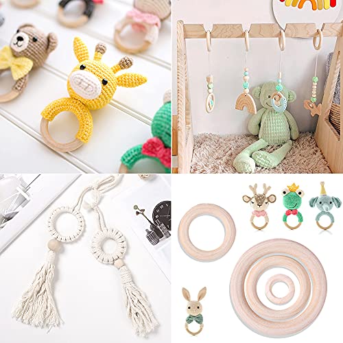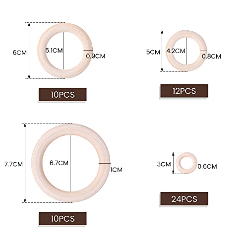 Anelli in Legno Naturale, XiXiRan 56 Pezzi Anelli Legno Macrame, Anello Legno, Anelli Tende Legno, Anelli di Legno non Finiti, Anelli Legno Bambini, Anelli Legno Dentizione(30mm,50mm,60mm,80mm)