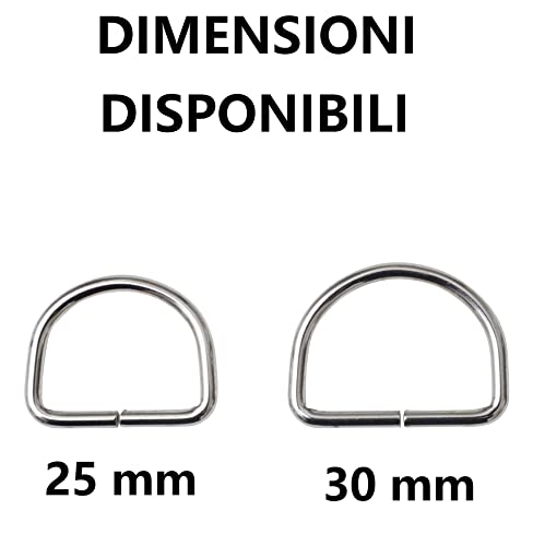 CONTENUTO: 50 anelli in metallo a forma di D non saldati per borse, cinghie, zaini, accessori con grandezza 25 mm. Prodotto realizzato al 100% in Italia.