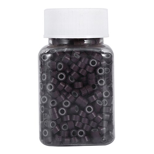 Anelli Micro Link in silicone, 1000PCS/Bottle 5MM Anelli di rstimento in silicone Passanti perline foderati Tubi Qualità del salone per esione dei capelli con punta, 5 colori(marrone medio)