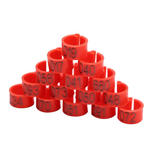 Anelli Piedi Piccione con Numero 001-100 Diametro 8mm Anelli Piedi pollame per Pulcini Pappagallo Pulcini Fascia Gamba Anatra Clip Anelli Fasce (Rosso)