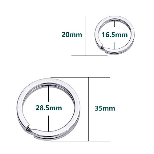 20 Anelli Portachiavi di Metallo Piatto, 20mm / 35mm, Portachiavi in Acciaio 304, Forte, Galvanizzato, Utilizzato per Collegare le Chiavi di Casa e Della Macchina, Decorazioni