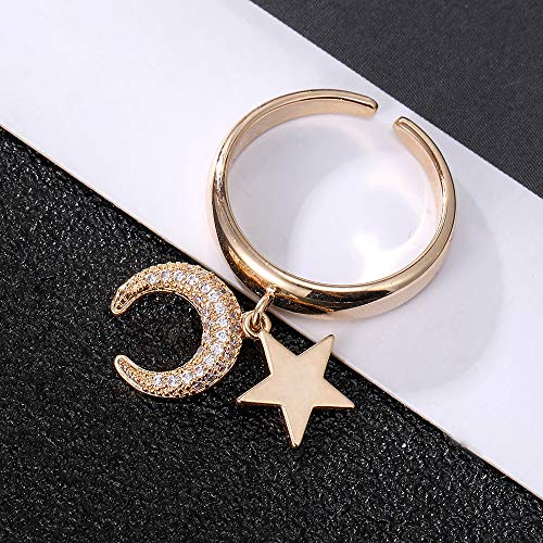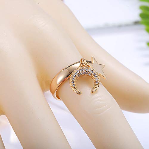 Anelli di promessa Luna e Stella per Donna, Anelli di Amicizia eterna placcati in Oro Rosa e Argento a Forma di C con Brillanti zirconi (Placcato Oro)