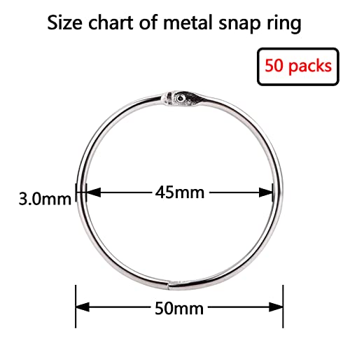 Anelli Rilegatura,Anelli del Libro 50 Pezzi leaf Binder Metallici Libro,50mm Argento Anelli Metallo per Raccoglitori,Anelli per Rilegatura Rotondi,Anelli di Carte in Metallo