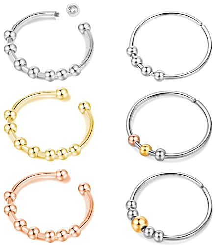 6PCS Anelli Spinner con Perle Anelli Spinner Anello di Ansia Spinner Anello Fidget Anelli Sottili Regolabili Impilabili per Donne Anello Antistress Acciaio Anello di Ansia Fidget con Spinner Perline