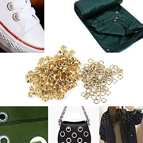 Set di anelli di tenuta occhiello, 100 pezzi 5mm fori occhielli di metallo panno con occhiello fabbricazione di accessori di riparazione per la decorazione della carta artigianale in pelle(Oro)
