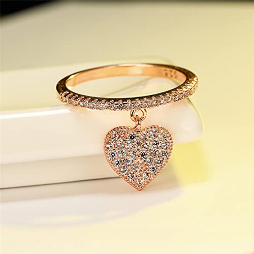 CXWK Anelli di zirconi Bianchi con Ciondolo a Cuore Carino per Le Donne Anello di promessa di Fidanzamento in Oro Giallo/Oro Bianco/Oro Rosa Gioielli da Sposa Femminili