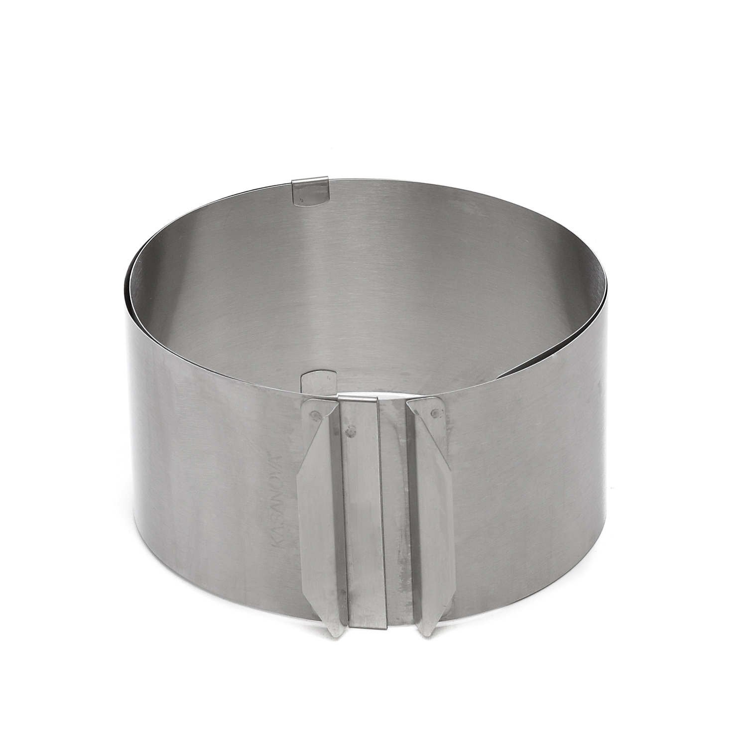 L'anello regolabile è un accessorio imperdibile per tutti gli appassionati di pasticceria ma anche per tutti coloro che volessero arricchire il proprio set di utensili da cucina con un oggetto pratico, elegante e semplicissimo da usare, che al medesimo tempo vi consentirà però di realizzare creazioni favolose. Grazie al suo telaio in acciaio inox è estremamente resistente a graffi, urti e cadute. Facilmente regolabile per adattarsi a tutti i tipi di torta che preferite, vi consentirà di ottenere delle torte dalla forma perfetta.