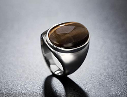 Anello Uomo, Acciaio Inossidabile Pietra Naturale Ovale Anello Argento Bombato Per Uomo Caffè