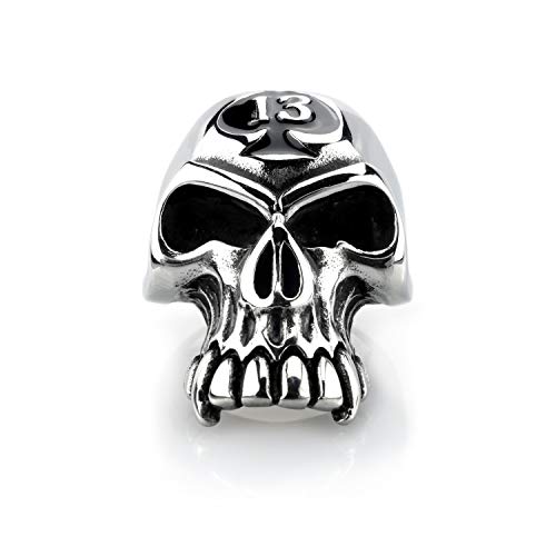 Anello in acciaio inox massiccio con teschio Pik 13, colore: argento e Acciaio inossidabile, 28, cod. 4024-12