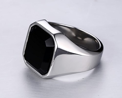 Vnox, anello in acciaio inox con zirconia cubica nera, alla moda, per uomini e donne, come fede nuziale o anello di fidanzamento e acciaio inossidabile, 22, cod. RC-207-10