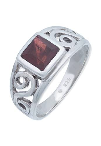 Anello argento 925 con pietre preziose granato pietra rossa argento sterling da donna in vero argento (MRG-219-52-(56))