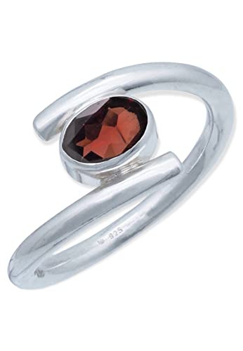 Anello argento 925 con pietre preziose granato pietra rossa argento sterling da donna in vero argento (MRG-209-52-(46))