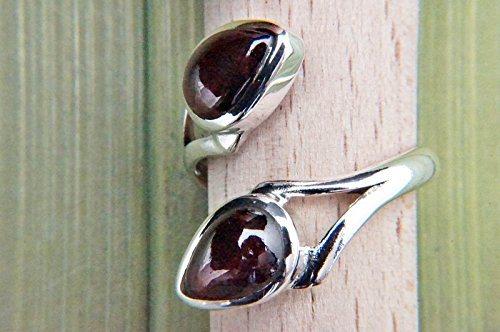 Anello argento 925 con pietre preziose misura regolabile granato pietra rossa argento sterling da donna in vero argento (MRV-088-02)