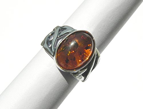 Anello Argento Sterling e Ambra Baltica - Collezione Classic, con Borsetta Satin [SRgd84]